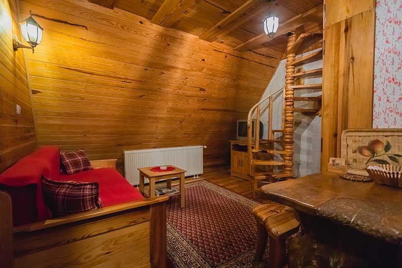 Konaci su tipa starih tarskih kuća i od njih se pruža veličanstven pogled na jezero. Izgrađeni su isključivo od prirodnih materijala – drveta i kamena što im daje posebnu lepotu i toplinu.